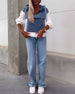 Avslappnad luvtröja med lapptäcke i denim med dragkedja