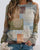 Sweatshirt Våffelmönster Blomtryck V-ringning