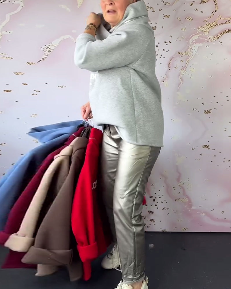 Sweatshirt Avslappnad Långärmad Tryckt Rundhals