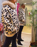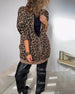 Tröja med avslappnad dragkedja och leopardmönster, varm
