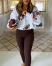 Tröja Casual Med Floralt Tryck Och Patchwork