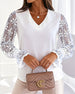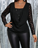 SPECIFIKATIONER Topptyp: Toppar Stil: Chic Material: Bomullsblandningar,Spets Tillfälle: Dagligen,Fest Urringning: Draperad Krage Mönstertyp: Enfärgade Typ av ärm: Vanlig ärm Ärmlängd: Långärmad Passform typ: Vanlig Säsong: Höst,Vinter Detaljer: Lappverk Paketet innehåller: 1 x Topp STORLEKSTABELL(cm) Storlek Byst Längd S 97 65 M 101 66....
