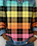 SPECIFIKATIONER Topptyp: Tröjor Stil: Chic Material: Bomullsblandningar Tillfälle: Dagligen Urringning: Rund nacke Mönstertyp: Pläd,Färgblock Typ av ärm: Vanlig ärm Ärmlängd: Långärmad Passform typ: Vanlig Säsong: Höst,Vinter Detaljer: Lappverk Paketet innehåller: 1 x Tröja STORLEKSTABELL(cm) Storlek Byst Längd S 97 65 M 101 66.5 L 105...