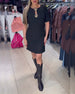 Klänning Kortärmad Rutig V-Ringning Patchwork