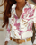 Tryckt Casual Topp Med V-Ringning Och Långa Ärmar