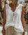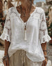 SPECIFIKATIONER Topptyp: Blusar Stil: Enkel Material: Bomullsblandningar Tillfälle: Dagligen Urringning: V-hals_V Typ av ärm: Volangärm Ärmlängd: 3/4 ärm Passform typ: Vanlig Säsong: Vår,Sommar Detaljer: Lappverk,Spets Paketet innehåller: 1 x Blus STORLEKSTABELL(cm) Storlek Byst Längd S 97 65 M 101 66.5 L 105 68 XL 111 69.5 2XL 117...
