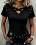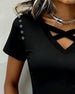 SPECIFIKATIONER Topptyp: T-shirt Stil: Enkel Material: Bomullsblandningar Tillfälle: Dagligen Urringning: V-hals_V Mönstertyp: Enfärgade Typ av ärm: Vanlig ärm Ärmlängd: Kortärmad Passform typ: Vanlig Säsong: Vår,Sommar Detaljer: Korsband,Urgröpande Paketet innehåller: 1 x T-shirt STORLEKSTABELL(cm) Storlek Byst Längd S 97 65 M 101 66.5 ...