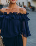 Blus Elegant Off-Shoulder Volang