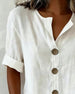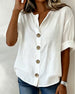 SPECIFIKATIONER Topptyp: Blusar Stil: Enkel Material: Bomull och linne Tillfälle: Dagligen Urringning: Rund nacke Mönstertyp: Enfärgade Typ av ärm: Vanlig ärm Ärmlängd: Halvärm Passform typ: Vanlig Säsong: Vår,Sommar Detaljer: Knappar Paketet innehåller: 1 x Blus STORLEKSTABELL(cm) Storlek Byst Längd S 97 65 M 101 66.5 L 105 68 XL 11...