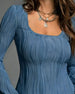 Fyrkantsringad Rynkad Topp Med Utsvängda Ärmar