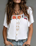 SPECIFIKATIONER Topptyp: Blusar Stil: Enkel Material: Bomullsblandningar Tillfälle: Dagligen Urringning: V-hals_V Mönstertyp: Enfärgade Typ av ärm: Volangärm Ärmlängd: Kortärmad Passform typ: Vanlig Säsong: Vår,Sommar Detaljer: Knappar Paketet innehåller: 1 x Blus STORLEKSTABELL(cm) Storlek Byst klädlängd S 92 65 M 96 66.5 L 100 68 ...