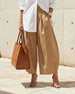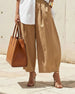 Byxor Enfärgad Elastisk Midja Tulpafåll Croppad