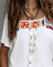 Lös Blus Med Korta Ärmar Och Stora Knappar