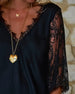 Top Med Spets Panel Detalj, V-Hals Design Och Feminint Stil
