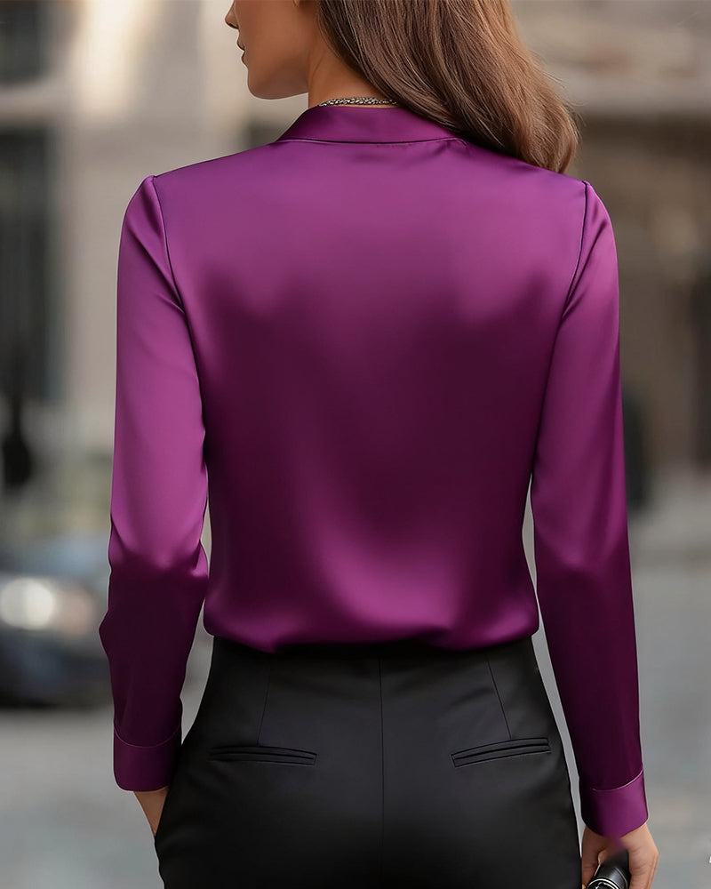 Skjorta avslappnad tryckt lapel lång ärm
