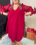 Klänning Puckad Ärm Nättyg Insydd V-hals Löst Sitthande