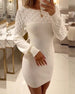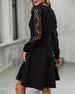 SPECIFIKATIONER Stil: Chic Material: Bomullsblandningar,Spets Klänningstyp: A-linje Klänning längd: Över knä Urringning: Fyrkantig hals Mönstertyp: Enfärgade Typ av ärm: Vanlig ärm Ärmlängd: Långärmad Detaljer: Lappverk,Genomskinlig Passform typ: Vanlig Säsong: Höst,Vinter Tillfälle: Dagligen Paketet innehåller: 1 x Klänning STORLEKSTABELL(cm)...