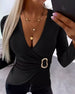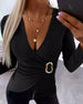 Blus Med Långärmsdesign, Pärlbeläggning Och Panel Detalj, Glamour Stämning