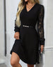 SPECIFIKATIONER Stil: Enkel,Elegant Material: Bomullsblandningar,Spets Klänningstyp: Asymmetrisk Klänning längd: Över knä Urringning: V-hals_V Mönstertyp: Enfärgade Typ av ärm: Vanlig ärm Ärmlängd: Långärmad Detaljer: Lappverk,Knappar,Oregelbunden Passform typ: Vanlig Säsong: Vår,Höst,Vinter Tillfälle: Dagligen Paketet innehåller: 1 x Klänning...