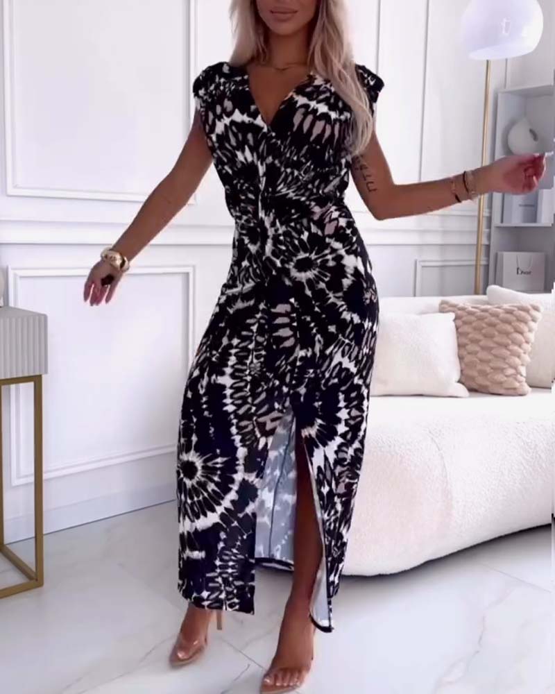 Klänning Elegant Prickig V-ringning Twist