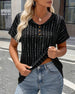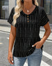 SPECIFIKATIONER Topptyp: Toppar Stil: Enkel Material: Bomullsblandningar Tillfälle: Dagligen Urringning: V-hals_V Mönstertyp: Randig Typ av ärm: Vanlig ärm Ärmlängd: Kortärmad Passform typ: Vanlig Säsong: Vår,Sommar Detaljer: Dragsko,Dragkedja Paketet innehåller: 1 x Topp STORLEKSTABELL(cm) Storlek Byst Längd S 97 65 M 101 66.5 L 105 6...