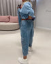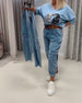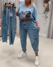 Blus V-ringning Utsvängd Ärm Denim