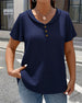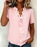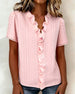 Blus Rynkad V-Ringning Kortärmad Utskärning