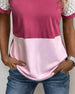T-Shirt Färgblock Spets Kort Ärm