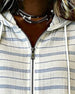 Topp Randig Hoodie Dragkedja Kort Ärm