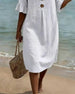 Klänning Knapp Rynkad Ärm Bomull-Linne