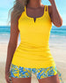 SPECIFIKATIONER Stil: Semester Material: 15% Spandex,85% Polyester Tillfälle: Semester Mönstertyp: Tryckt Ärmlängd: Ärmlös Linnetyp: Tankini BH typ: Trådlös BH Nedre typ: Naturlig Passform typ: Skinny Säsong: Vår,Sommar,Höst,Vinter Detaljer: Snöra upp Paketet innehåller: 1 x Tankini STORLEKSTABELL(cm) Storlek Byst Midjeomkrets Höft Under bys...