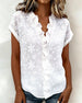 SPECIFIKATIONER Topptyp: Blusar Stil: Enkel Material: Bomullsblandningar Tillfälle: Dagligen Urringning: V-hals_V Mönstertyp: Enfärgade Typ av ärm: Vanlig ärm Ärmlängd: Kortärmad Passform typ: Vanlig Säsong: Vår,Sommar Detaljer: Slits Paketet innehåller: 1 x Blus STORLEKSTABELL(cm) Storlek Byst Längd S 97 65 M 101 66 L 105 67 XL...
