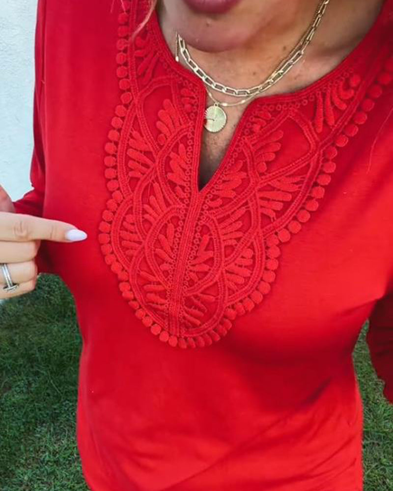 Modernt Topp Med V-Ringning I Kontrastfärg