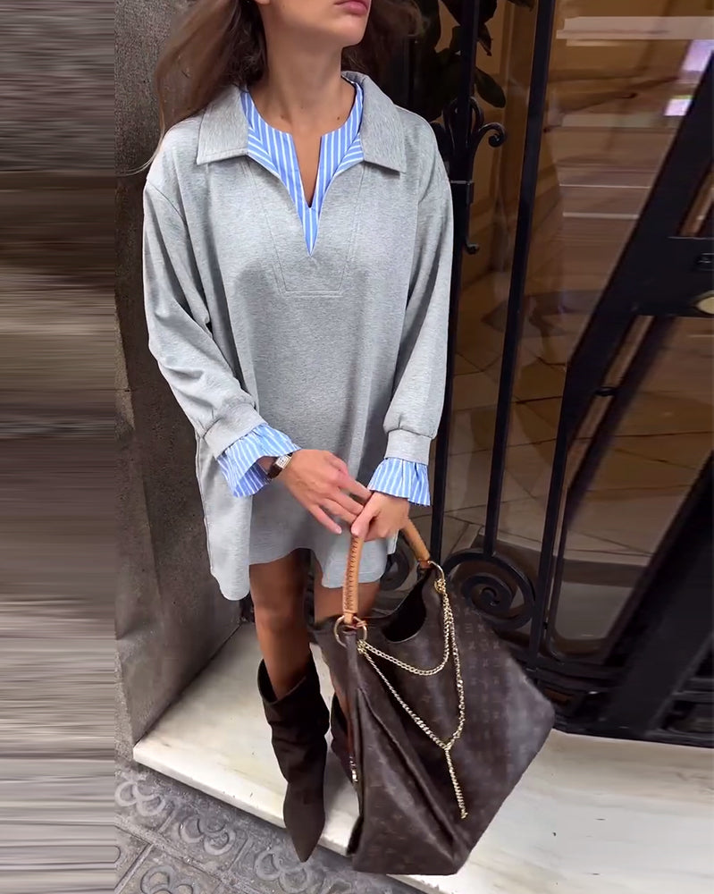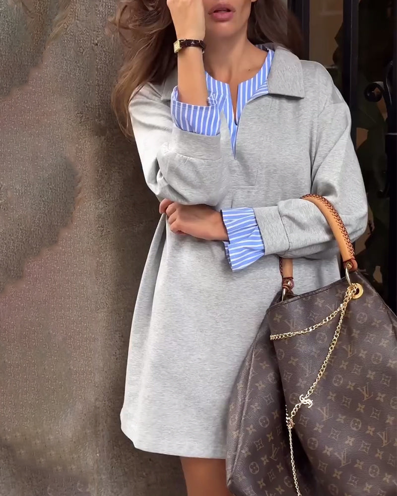 Icon1 Klänning avslappnad, randig, kontrastfärgad söm