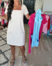 Klänning Fyrkantig Halsringning Casual Fickor