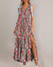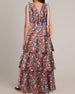Maxiklänning V-Halsband Blomig Mångbandad Med Midjebånd