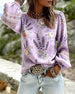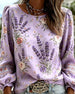 Blus Lavendel Blommigt Print Lyktaärm