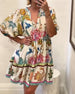Babydollklänning Bohemisk V-Ringning Mönstrad