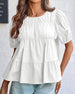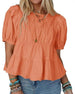 Blus Puffärm Loose-Fit Rynkad