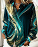 Blus Ryschad V-Ringning Tie-Dye-Tryck