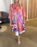 Klänning Stilfull Slagkrage Tryckt