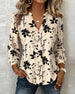 Blus Bladtryck Knappning Ner V-Ringning