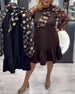 Klänning avslappnad prickig långärmad knälång