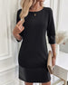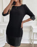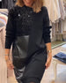 Klänning Pu Läder Patchwork Rund Hals