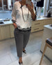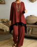 Set Oregelbunden Långärmad Topp Och Byxor Med Raka Ben