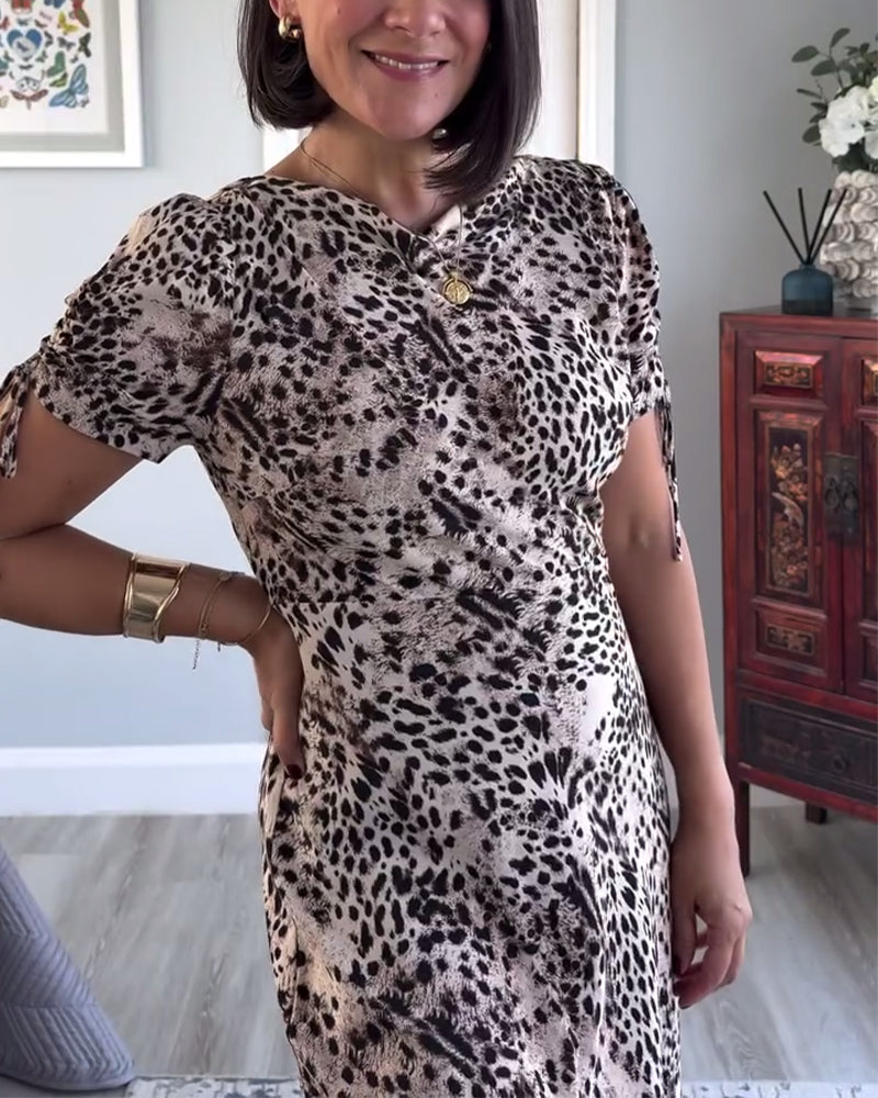 Icon1 Klänning Med Leopardmönster Och Kortsleeved Design