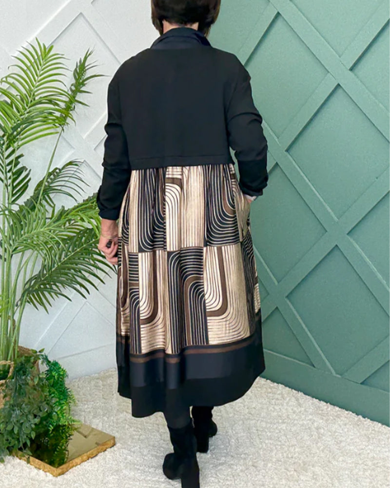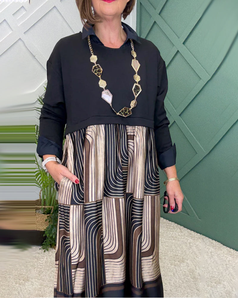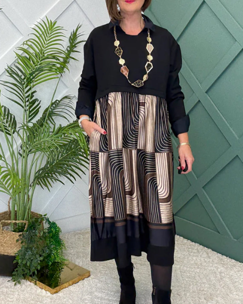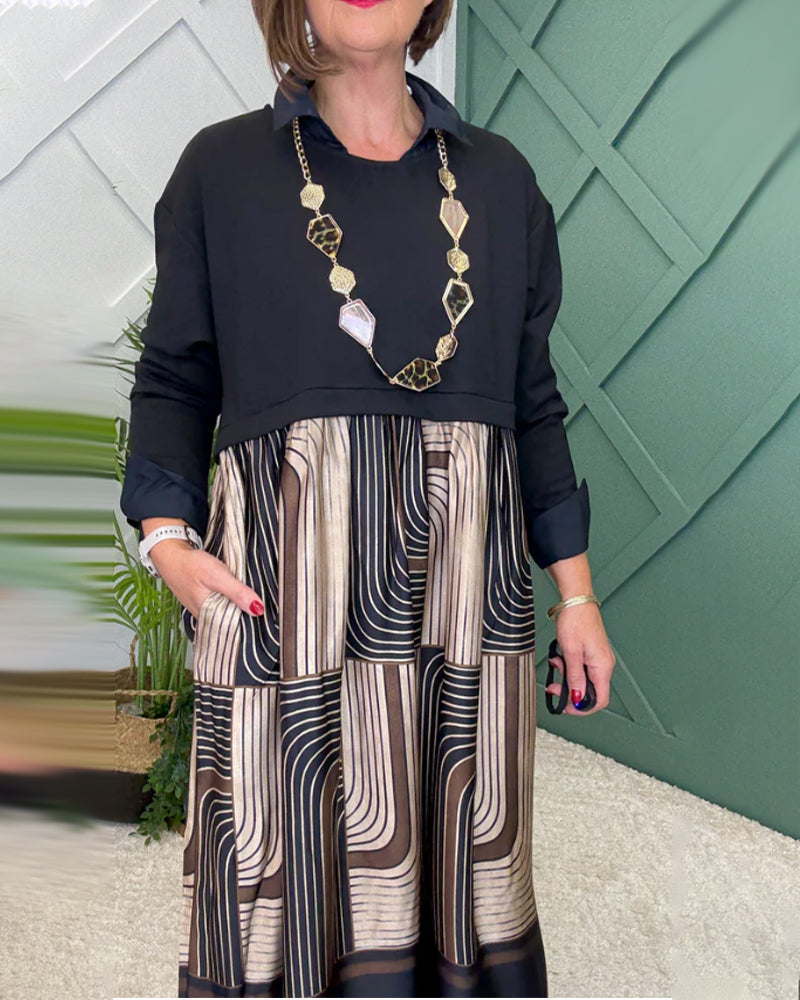 Modernt Klänning Med Slag Och Rutigt Mönster