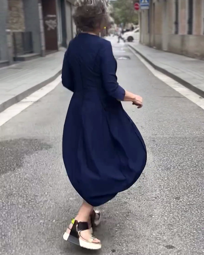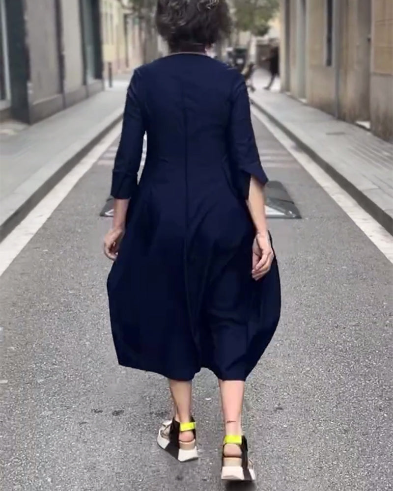 SPECIFIKATIONER Stil: Enkel Material: Bomullsblandningar Klänningstyp: Skiftklänning Klänning längd: Knälängd Urringning: V-hals_V Typ av ärm: Lykthylsa Ärmlängd: 3/4 ärm Passform typ: Vanlig Säsong: Vår,Höst Tillfälle: Dagligen Paketet innehåller: 1 x Klänning STORLEKSTABELL(cm) Storlek Byst Längd S 97 100 M 101 101.5 L 105 103 XL 1...