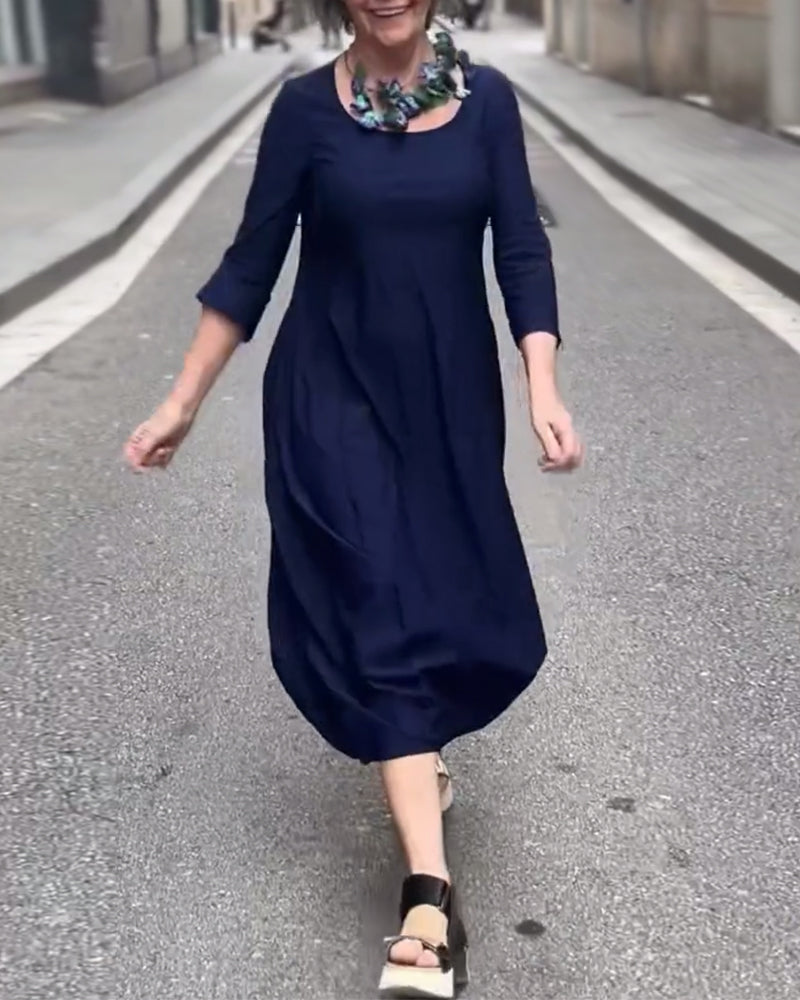 SPECIFIKATIONER Stil: Enkel Material: Bomullsblandningar Klänningstyp: Skiftklänning Klänning längd: Maxi Urringning: Rund nacke Mönstertyp: Enfärgade Typ av ärm: Vanlig ärm Ärmlängd: 3/4 ärm Passform typ: Vanlig Säsong: Höst,Vinter Tillfälle: Dagligen Paketet innehåller: 1 x Klänning STORLEKSTABELL(cm) Storlek Byst Längd S 97 125 M...