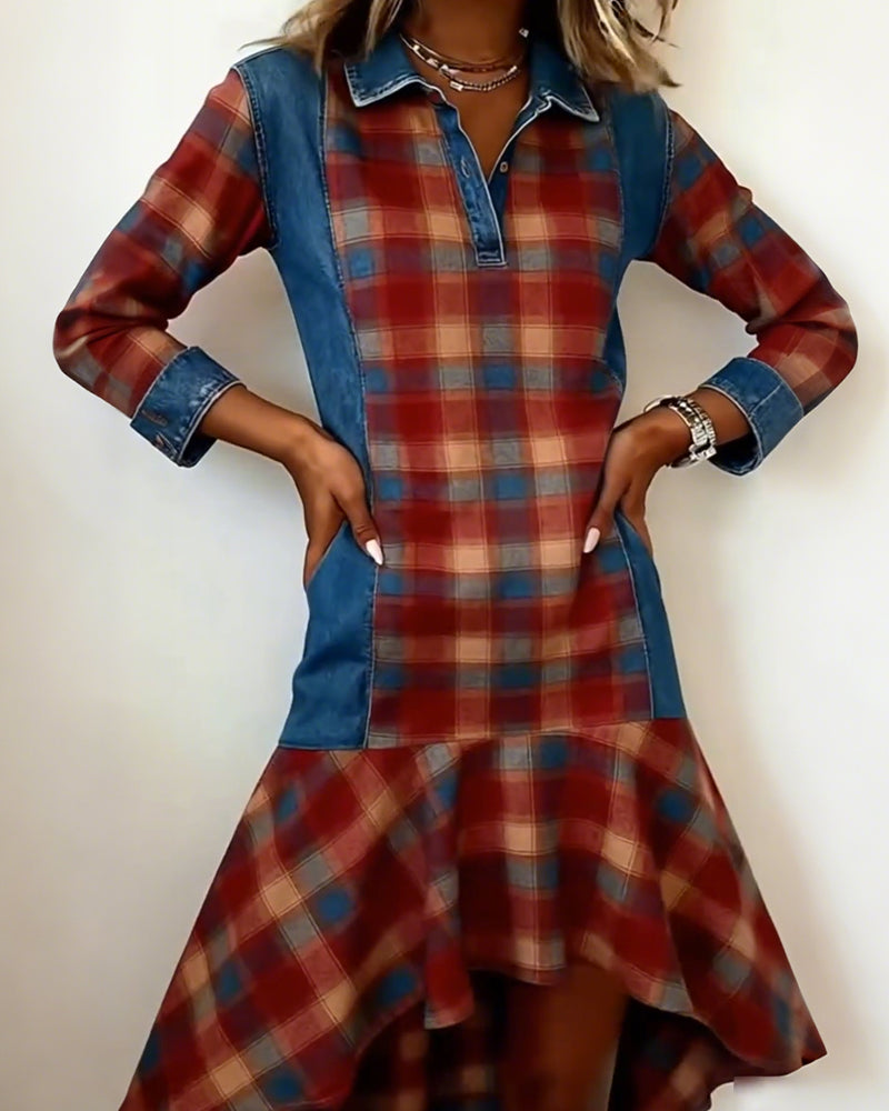 Modiga Långärmade Blusar Med Rutigt Mönster